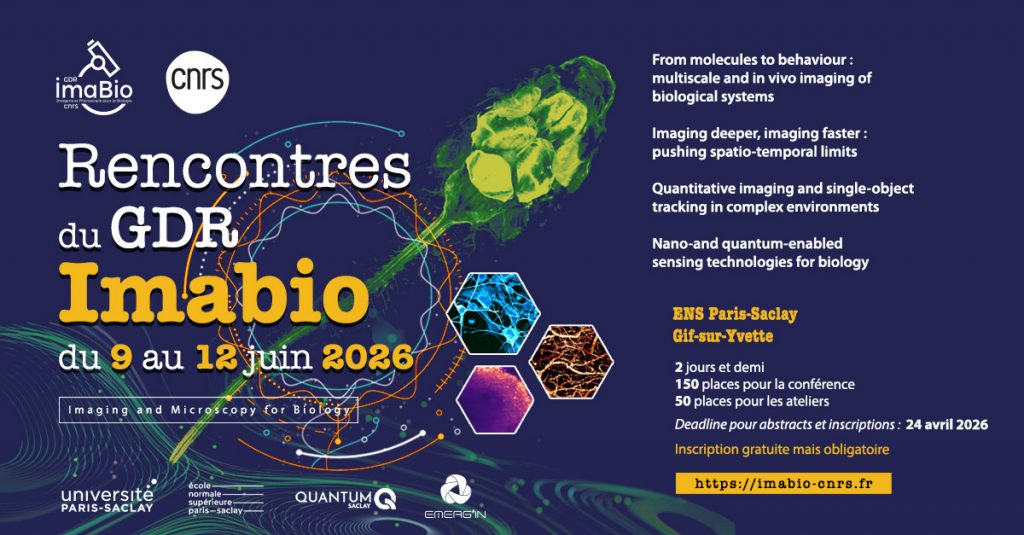 Les prochaines journées "Rencontres du GDR Imabio" se tiendront du 9 au 12 juin 206 sur le campus ENS Paris-Saclay à Gif-sur-Yvette.